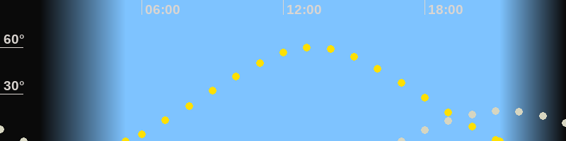 | Höchster Sonnenstand (Kulmination) | 13:16 Uhr (h = 60.2°) |