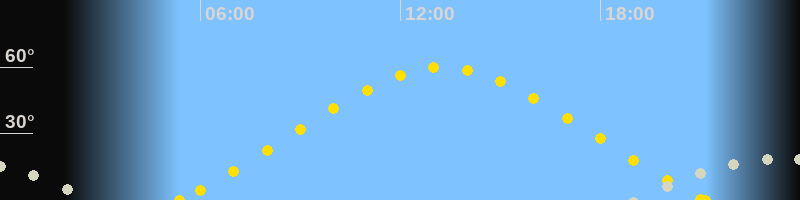 | Höchster Sonnenstand (Kulmination) | 13:16 Uhr (h = 59.8°) |