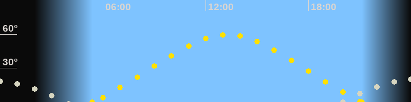 | Höchster Sonnenstand (Kulmination) | 13:16 Uhr (h = 59.6°) |