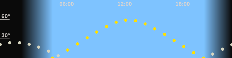 | Höchster Sonnenstand (Kulmination) | 13:16 Uhr (h = 59.2°) |