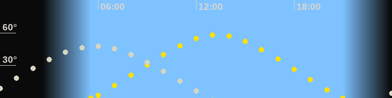 | Höchster Sonnenstand (Kulmination) | 13:16 Uhr (h = 58.1°) |