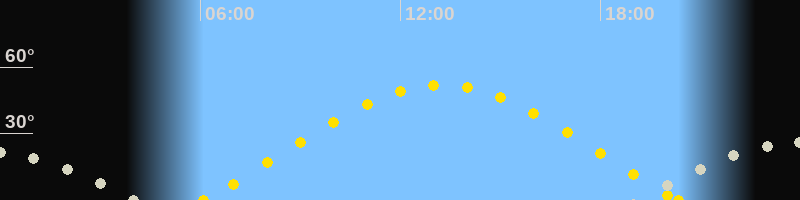 | Sonnenaufgang | 06:05 Uhr im Osten (αAz = 68.9°) |