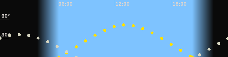 | Sonnenaufgang | 06:10 Uhr im Osten (αAz = 70.5°) |