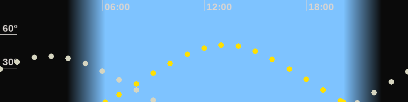 | Sonnenaufgang | 06:11 Uhr im Osten (αAz = 71.1°) |