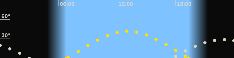 | Höchster Sonnenstand (Kulmination) | 13:05 Uhr (h = 41.7°) |