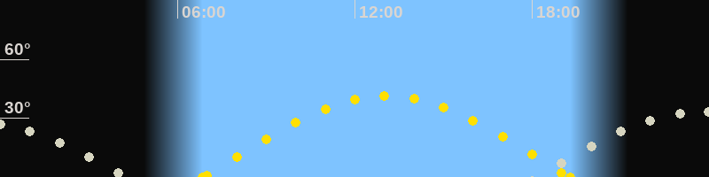 | Höchster Sonnenstand (Kulmination) | 13:04 Uhr (h = 41.3°) |