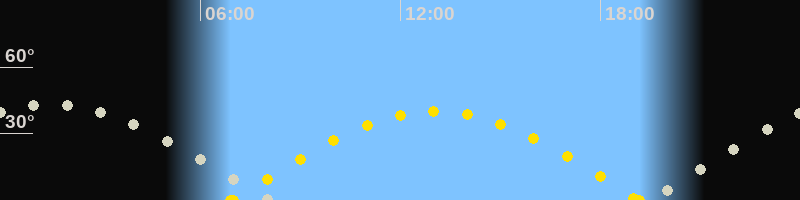 | Sonnenaufgang | 06:54 Uhr im Osten (αAz = 87.7°) |
