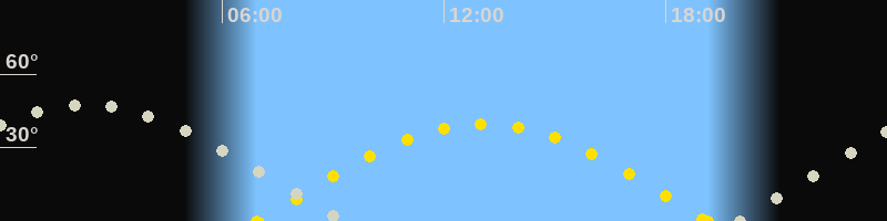 | Sonnenaufgang | 06:56 Uhr im Osten (αAz = 88.3°) |