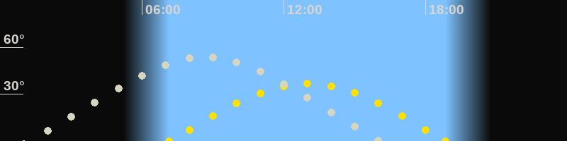 | Höchster Sonnenstand (Kulmination) | 13:00 Uhr (h = 36.7°) |