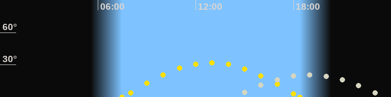 | Mondaufgang | 14:18 Uhr im Südosten (αAz = 120°) |