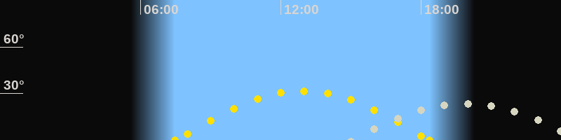 | Höchster Stand (Kulmination) | 19:47 Uhr (h=23.3°) |