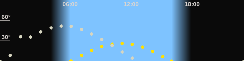 | Höchster Sonnenstand (Kulmination) | 11:54 Uhr (h = 26.3°) |