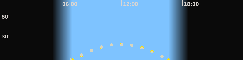 | Höchster Sonnenstand (Kulmination) | 11:53 Uhr (h = 24.1°) |