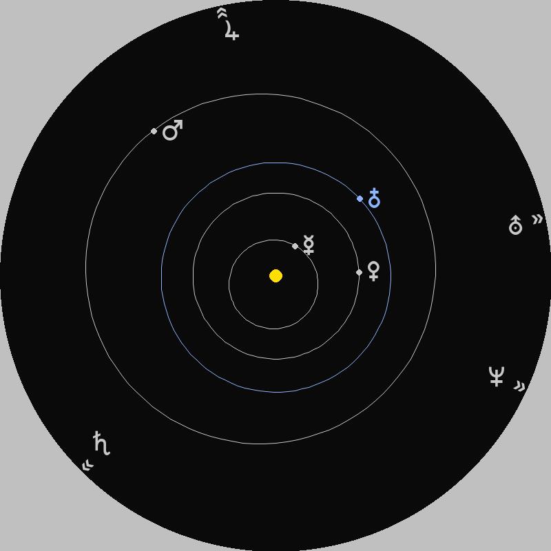 | f Merkur g Venus l Erde h Mars j Jupiter S Saturn A Uranus G Neptun |