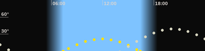 | Höchster Sonnenstand (Kulmination) | 11:54 Uhr (h = 21.5°) |