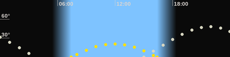 | Höchster Sonnenstand (Kulmination) | 11:54 Uhr (h = 20.9°) |