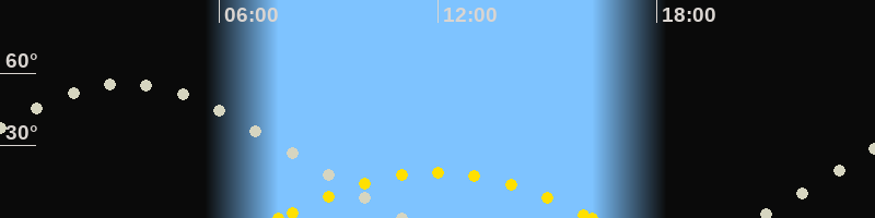 | Höchster Sonnenstand (Kulmination) | 11:56 Uhr (h = 19°) |