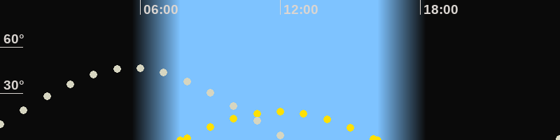| Höchster Sonnenstand (Kulmination) | 11:57 Uhr (h = 18.4°) |
