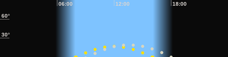 | Höchster Sonnenstand (Kulmination) | 12:00 Uhr (h = 17°) |