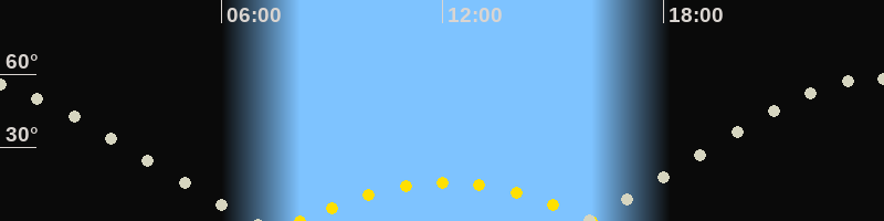 | Höchster Sonnenstand (Kulmination) | 12:05 Uhr (h = 15.9°) |