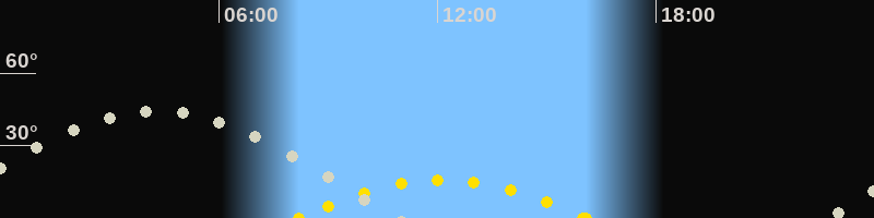 | Höchster Sonnenstand (Kulmination) | 12:09 Uhr (h = 15.8°) |