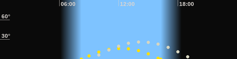 | Höchster Sonnenstand (Kulmination) | 12:14 Uhr (h = 16.5°) |