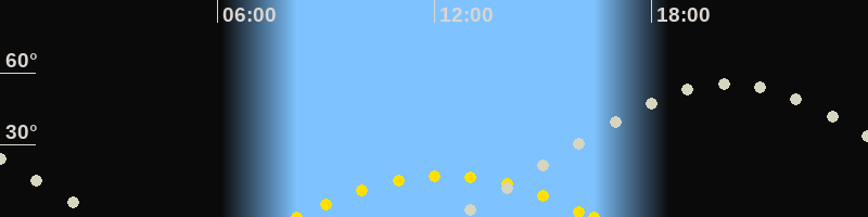 | Höchster Sonnenstand (Kulmination) | 12:17 Uhr (h = 17.4°) |