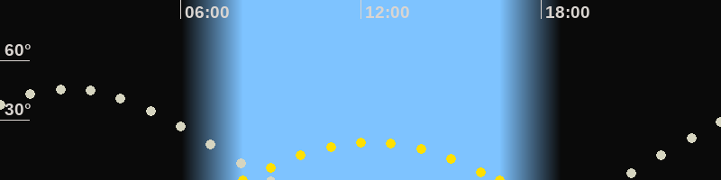 | Höchster Sonnenstand (Kulmination) | 12:20 Uhr (h = 19°) |