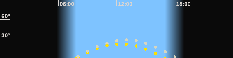 | Höchster Sonnenstand (Kulmination) | 12:23 Uhr (h = 22°) |