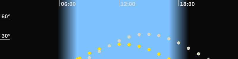 | Höchster Sonnenstand (Kulmination) | 12:23 Uhr (h = 22.5°) |