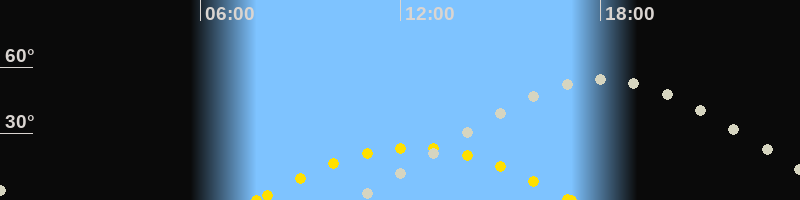 | Höchster Stand (Kulmination) | 18:01 Uhr (h=54.3°) |