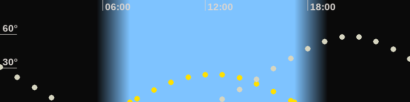 | Höchster Sonnenstand (Kulmination) | 12:24 Uhr (h = 24.7°) |