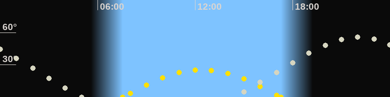 | Höchster Sonnenstand (Kulmination) | 12:24 Uhr (h = 25.3°) |