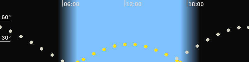| Höchster Sonnenstand (Kulmination) | 12:24 Uhr (h = 26°) |