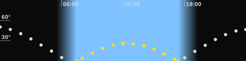 | Höchster Sonnenstand (Kulmination) | 12:24 Uhr (h = 26.3°) |