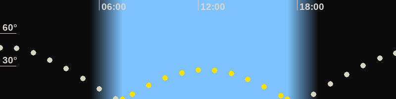 | Höchster Sonnenstand (Kulmination) | 12:24 Uhr (h = 26.7°) |