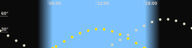 Höchster Sonnenstand (Kulmination)12:20 Uhr (h = 35.7°)