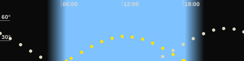 Höchster Sonnenstand (Kulmination)12:19 Uhr (h = 36.4°)
