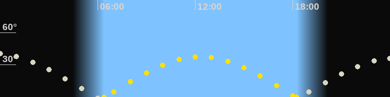 Höchster Sonnenstand (Kulmination)12:18 Uhr (h = 37.6°)