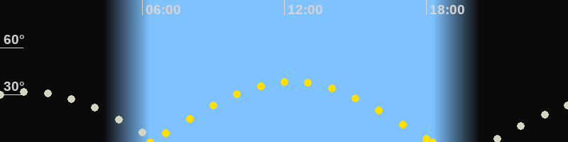 Höchster Sonnenstand (Kulmination)12:18 Uhr (h = 38.4°)