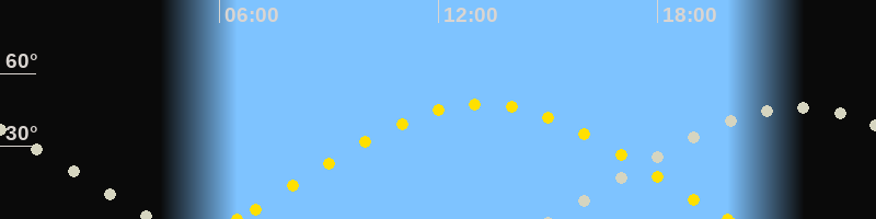 | Sonnenaufgang | 06:28 Uhr im Osten (αAz = 76.7°) |