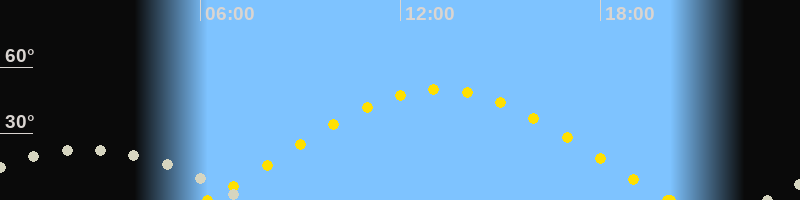 | Sonnenaufgang | 06:13 Uhr im Osten (αAz = 72.6°) |