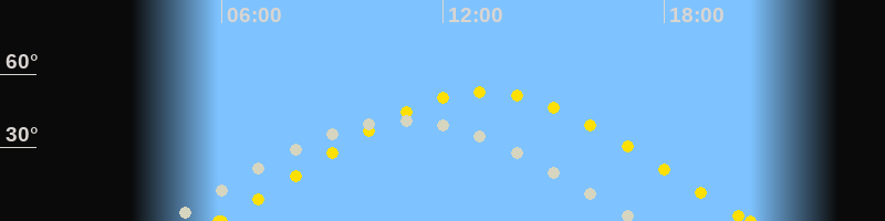 | Sonnenaufgang | 05:55 Uhr im Osten (αAz = 67.7°) |