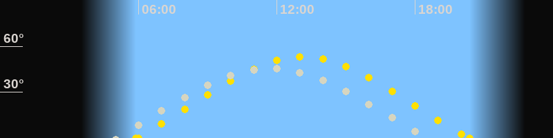 | Sonnenaufgang | 05:53 Uhr im Nordosten (αAz = 67.1°) |