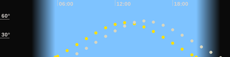 | Sonnenaufgang | 05:46 Uhr im Nordosten (αAz = 65°) |