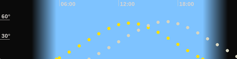 | Höchster Sonnenstand (Kulmination) | 13:07 Uhr (h = 55°) |