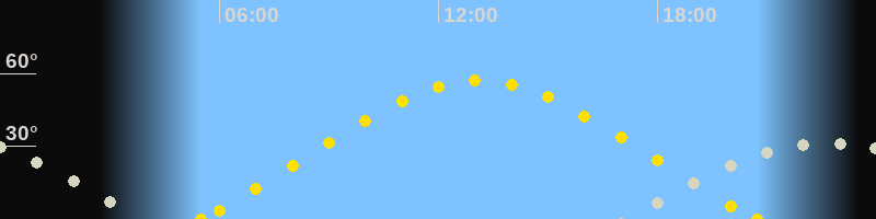 | Höchster Sonnenstand (Kulmination) | 13:06 Uhr (h = 57.2°) |