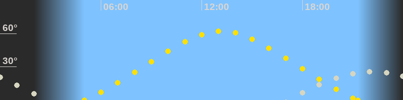 | Höchster Sonnenstand (Kulmination) | 13:09 Uhr (h = 62.2°) |