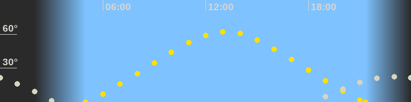 | Höchster Sonnenstand (Kulmination) | 13:09 Uhr (h = 62.3°) |
