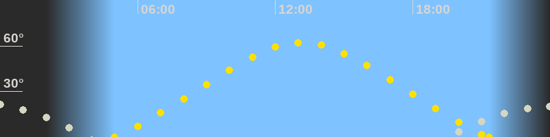 | Höchster Sonnenstand (Kulmination) | 13:09 Uhr (h = 62.4°) |